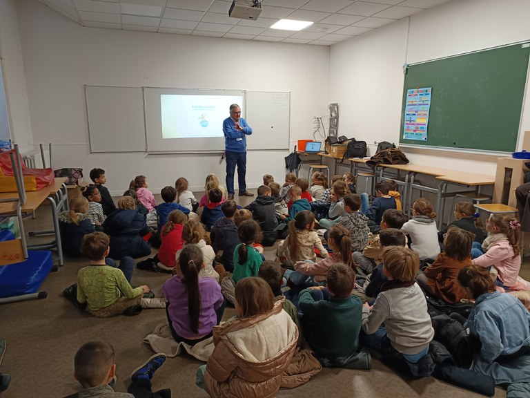Publié le 06/03/2026Le mardi 27 janvier M. Roux, bénévole de l'association « petits princes » est venu à la rencontre des élèves du primaire et les délégués du collège.
