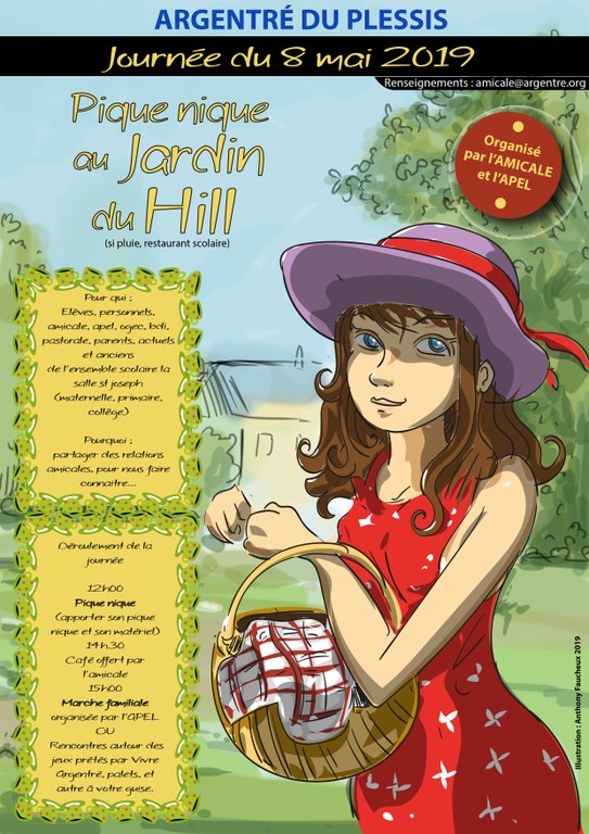 Pique nique organisé par l'Apel et l'Amicale Quand le 08/05/2019 de 12h00 à 16h00 Où Jardin du Hill (restaurant scolaire si pluie) Ajouter l'événement au calendrier vCal iCal inscription au préalable soit à l'Amicale (amicale@argentre.org) ou à l'Apel (apel@argentre.org)