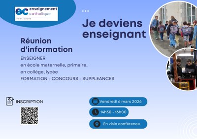 La prochaine réunion d’information de la DDEC « Je deviens enseignant » se tiendra le vendredi 6 mars 2026 de 14h30 à 16h00 en visioconférence.